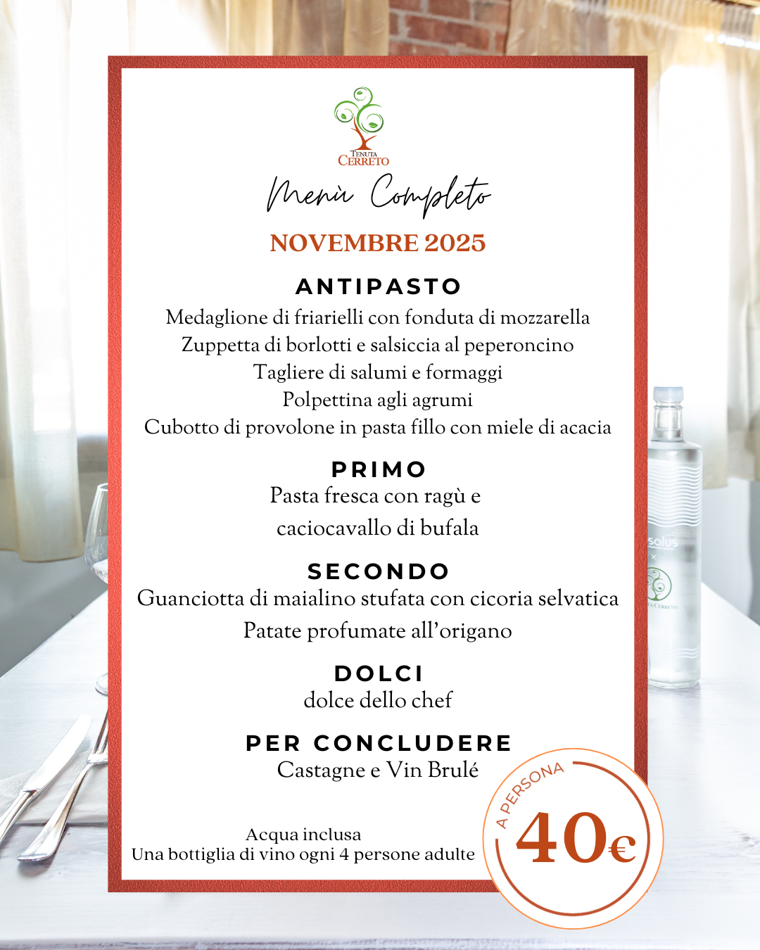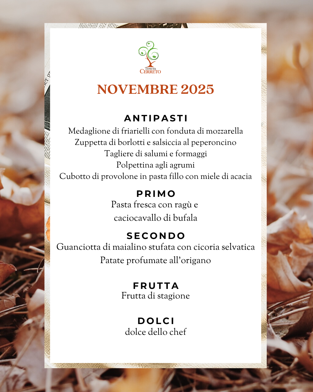 Vivi momenti di convivialità con i nostri menù stagionali, disponibili durante la settimana e nel weekend. Prenota facilmente il Pranzo o la Cena in Agriturismo direttamente online.